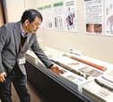 大学で考古学を学ぶ笠川さんはニュースで、上塩冶築山古墳(出雲市上塩冶町)で出土した大刀(たち)の鞘(さや)が赤く塗られていたことを知り、現物を見るために訪れた。「保存状態がよく驚いた。いい思い出ができた」と笑顔だった。