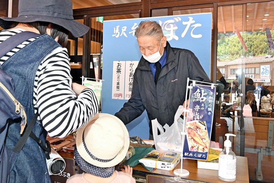 駅前では弁当製造販売業者が出店し、町観光協会などが観光パンフレットを配布。石見神楽の衣装試着体験やサイクリングツアーをPRするコーナーも設け、盛り上げに一役買った。