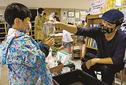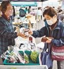 朝市は、竹矢地区の有志でつくる実行委員会が毎月第1日曜に開く。2周年では、開催時間を通常より3時間延ばし、買い物券が当たるくじ引きもあった。