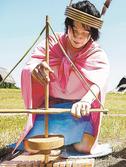 火おこし体験では、円盤が付いた木製の道具「火きりきね」で、燃えやすくするためにガマの花粉をかけた木材をこすり、摩擦熱で煙や火が出ると歓声が上がった。ろう石をやすりや紙やすりで磨く勾玉作りやベンガラ染め、藍染め体験もにぎわった。