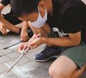 火おこし体験が昨年に続き2回目という、出雲市立塩冶小6年の竹治薫杜君(11)は「去年は火が付かなかったけど、今年は付いてうれしかった」と喜んだ。