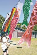 布のこいのぼりに色や模様を描く工作教室が5日、浜田市野原町の市世界こども美術館であり、親子連れが個性豊かな作品を仕上げた。