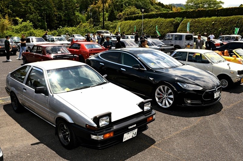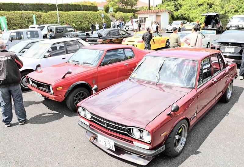 旧車は最近の車にはない凝ったデザインや堅牢さ、レトロ感を味わえるのが魅力。会場には日産・スカイラインGTーRや「ハチロク」の愛称で親しまれるトヨタ・トレノといった時代を代表する車種が並んだ。来場者はさまざまな角度から鑑賞してカメラに収めたり、オーナーにエンジンルームを見せてもらったりして、楽しんだ。