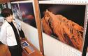 民族衣装を身に着けた若い女性、ウサギを抱いてほほ笑む少年など路地や寺院といった町の景色に溶け込む人々を撮影した24点が並ぶ。青木さんは「暮らしの中の人の姿を撮りたい」と人物を被写体にすることが多く「写真を見て笑顔になってもらえたらうれしい」と来場を呼びかけた。