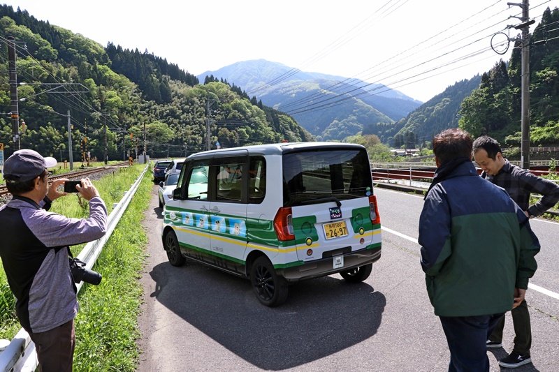 特急やくもが走るJR伯備線のJR生山駅(鳥取県日南町生山)近くでガソリンスタンドを運営する前田石油店(同)が、やくもの緑色編成を模したレンタカーサービスを展開している。車両の細部を忠実に再現した力作で、全国の鉄道ファンの間でも「小さなやくもが走っている」と話題だ。実際に利用し、やくもの撮影でにぎわう日野、日南町の撮影地を巡った。