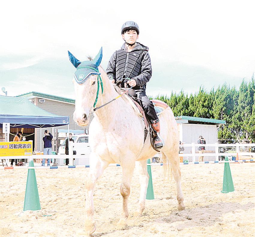 同クラブは2019年4月に始まり、現在は17人が動物と触れ合う。発表会では小学1年から高校1年までの9人が馬にまたがった。時に牧場職員の手を借りながら馬を止めたり左右に曲がらせたりし、約500メートルのコースをそれぞれの速度で走り終えると、保護者や職員の大きな拍手をもらった。