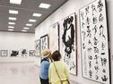 【松江】松江市袖師町、島根県立美術館のギャラリーで9日、開眼(かいげん)師範会書展が始まった。書道誌「開眼」の師範会会員による個性あふれる作品203点が並び、来館者はじっくり鑑賞していた。13日まで。