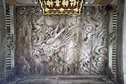 建物の随所に掘られた見事な彫刻が見どころで、中でも注目を集めているのが、拝殿向拝の天井に彫られた全長16メートルの龍(竜)。長さは日本一という。龍が握りしめる巨大な如意宝珠(にょいほうじゅ)は神聖なる玉として知られ、さまざまな願いをかなえてくれると伝わる。まさに「ドラゴンボール」である。