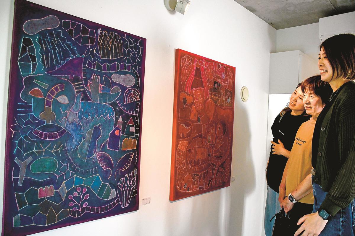 来場した松江市菅田町の自営業、石橋裕佳さん(37)は「さまざまな物語が想像できて面白い。色合いが深く、見ていて心地がいい」と話した。