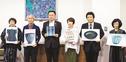 作品を購入した松江市殿町の自営業、尾崎浩一さん(69)は「色合いが夏の夜みたいできれい。お酒を飲むのが楽しみ」と笑顔で話した。