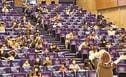 江津市こどもまつりが12日、同市江津町の市総合市民センターであった。吹奏楽演奏や子ども神楽のステージのほか、積み木遊び、絵本、野菜について学ぶ食育など多彩なブースが設けられ、市内外の家族連れ800人が楽しんだ。