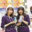 桃色のジャケットに黒のワンピース姿で、島根県産品をPRする女性。県観光連盟が一般の応募者から選び、2年間の任期で採用する「しまね観光大使」だ。