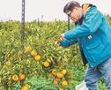 安来市恵乃島町の「やすぎ観光みかん園」でミカンの花が見頃を迎えた。直径約2センチの白い花が緑の葉に映え、中海からの風に乗って、甘い香りが鼻をくすぐる。