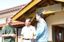 羊の毛刈り見学会が19日、出雲市佐田町一窪田の飯の原農村公園吉栗の郷であり、親子連れなどが様子を見守った。