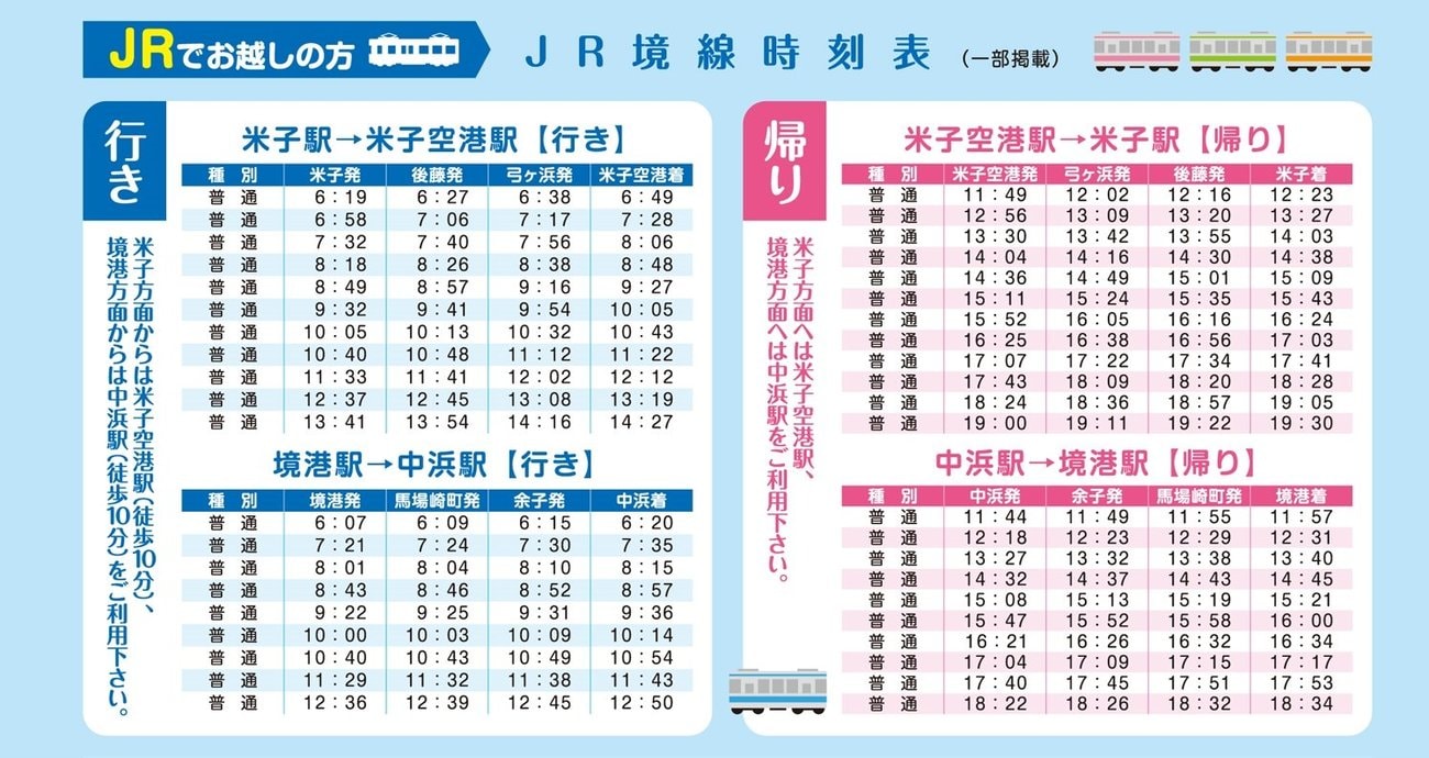 JR境線の時刻表(出典:航空自衛隊美保基地HP)
