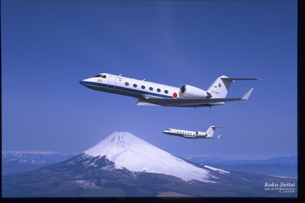 U4は、指揮連絡、小型軽量貨物などの空輸、訓練支援などの効率化のため、平成7年度に2機導入された多用途支援機です。その後、8年度に1機、9年度に1機、10年度にも1機の調達が認められました。最新の計器表示システム、航法装置などを装備しており、米国ガルフストリーム社のビジネスジェット機ガルフストリームⅣと同型機で、高い整備性、信頼性を誇っています。 (出典:航空自衛隊HP)