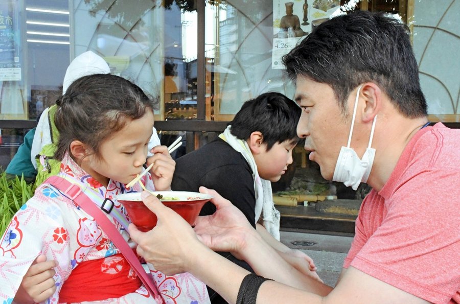 家族連れで来た松江市の中央小学校3年、小川菜々子さん(10)は「外で食べるラーメンはおいしかった」と話した。