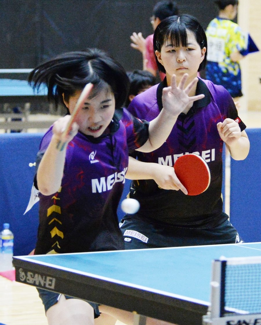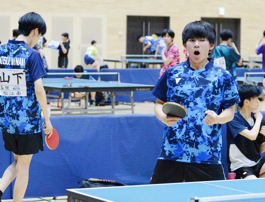 第62回島根県高校総合体育大会の卓球は30日、出雲市総合体育館で男女のダブルス決勝リーグまでと、シングルスの女子1回戦、男子1、2回戦が行われた。