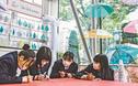 会場を通りかかった松江農林高校3年の日置力斗さん(18)は「きれいな傘が並んでいて驚いた。写真を撮って楽しみたい」と話した。