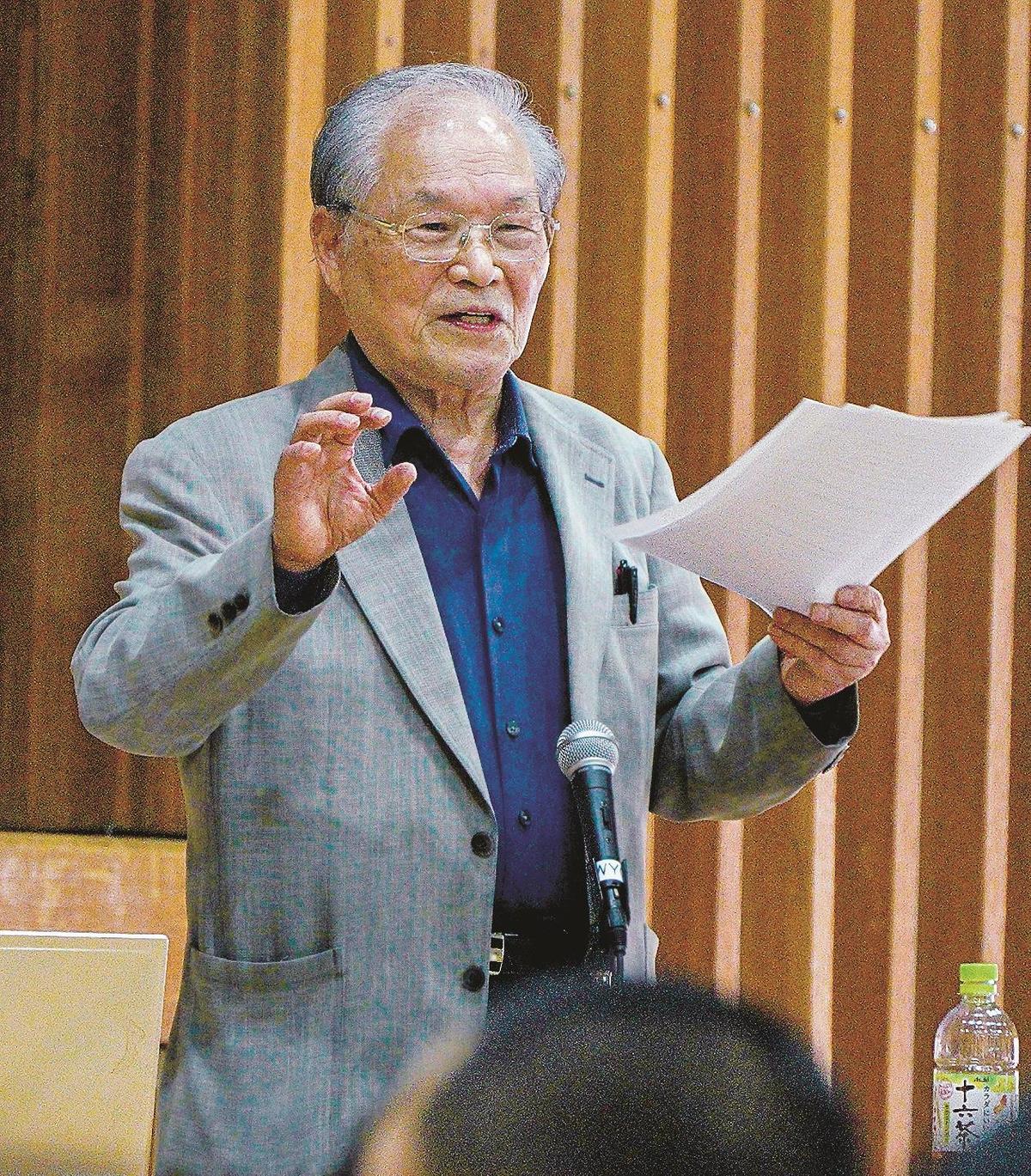 島根県川本町川本、島根中央高校の校歌を作詞した県詩人連合理事長の洲浜昌三さん(84)=大田市久利町=の講演が29日、同校であり、全校生徒250人が歌詞に込められた思いや作詞時のエピソードに耳を傾けた。