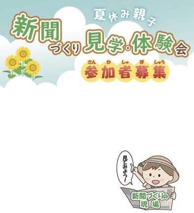 同日午後1時半から開会行事の後、新聞の特長や制作の流れを学ぶ「新聞教室」を開催(かいさい)。その後、見学や制作体験を行います。最後のおやつタイム・質問コーナーでは、新聞社の人にいろいろと質問ができますよ。午後4時半に終わる予定です。