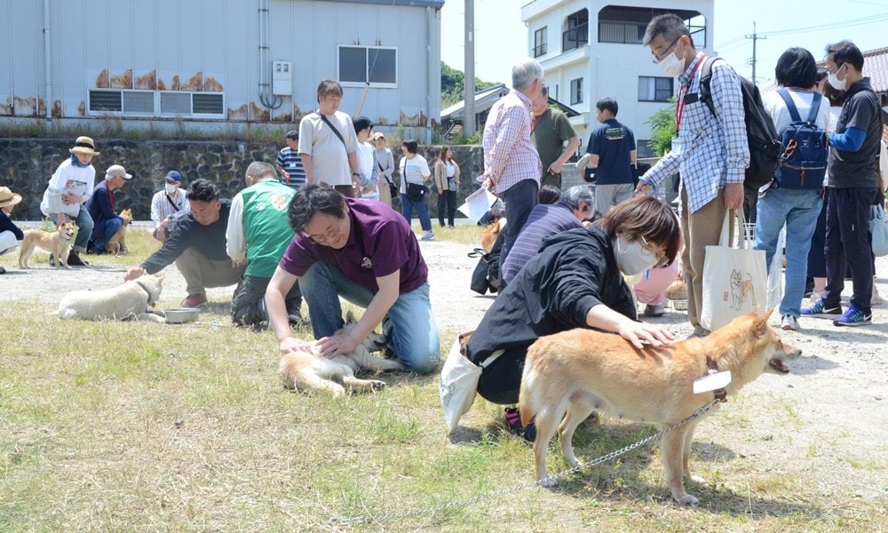 会を主催した山陰柴犬育成会が2003年に結成後、鑑賞会を開いて新たな飼い主を見つけるなどし、現在は約530匹まで増えている。犬を誕生させた愛好家の孫で、育成会の尾﨑哲会長(66)=湯梨浜町宇野=は「山陰柴犬の存在を広め、数をさらに増やしたい」と話した。
