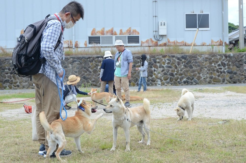 会場では飼い主同士が交流を深め、犬の親子が再会する場面もあった。来場者は「すぐに寄ってきた」と人懐っこさを喜び、なでたり写真を撮ったりした。