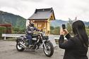 午前10時ごろから、エンジン音をとどろかせて団体のライダーが続々と入場。アメリカンやスポーツタイプ、オフロードなど国内外の車種が集結し、1時間ほどで満車状態になる盛況ぶりだった。参加者は、バイクを写真に収めたり、互いの愛車を紹介し合ったりと交流の輪を広げていた。