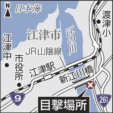 3日午前5時15分ごろ、江津市渡津町の江の川堤防でランニングしていた男性がクマ1頭を目撃し、江津市に通報した。現場は江の川に架かる新江川橋近くで、江津市役所から東に1キロの住宅密集地付近。市は外出する際に注意するよう呼びかけている。けが人はいなかった。