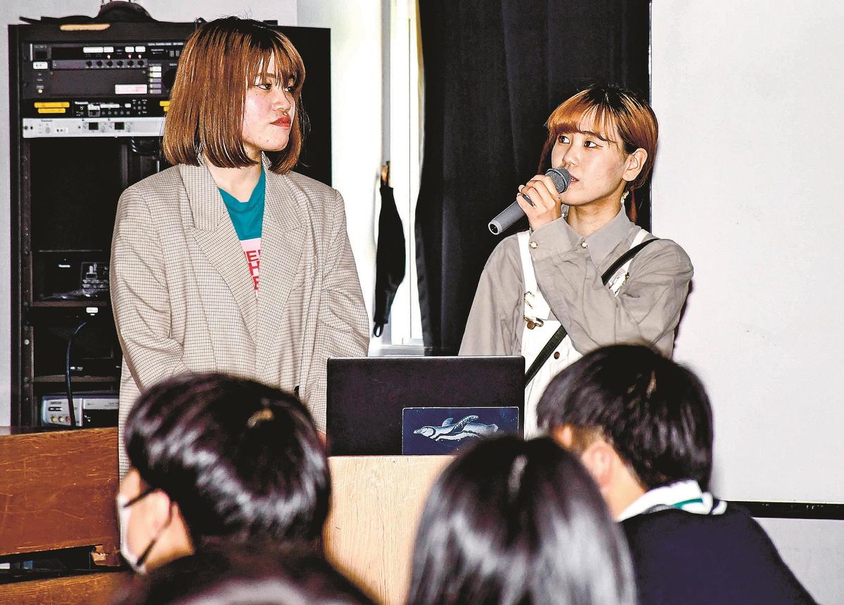 活動に参加する2年の糸賀亜夏華(あげは)さん(16)は「発表を聞いて具体的なイメージが湧いた。使いやすくするため、話し合いで良い意見を出したい」と話した。(小豆沢颯太)