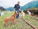 校外学習の一環で、牧場を管理する金山富憲さん(83)ら地域住民が毎年児童を招待し、ヤギの生態を教えている。