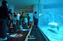 アクアス休館日の4日、別館シロイルカ繁殖プールの観覧スペースにマジックミラー付きのパーティションが設置されました。これは早ければ今月中にも出産を迎えるシロイルカが安心して出産、育児ができるようにと考えられた対策の一つです。