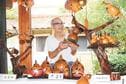 出雲市多伎町口田儀、多伎文化伝習館で6日、三成猪一(いいち)さん(93)=出雲市西園町=のヒョウタン細工作品の展示が始まり、動物や物語から着想を得た約120点が来館者を楽しませている。9日まで。