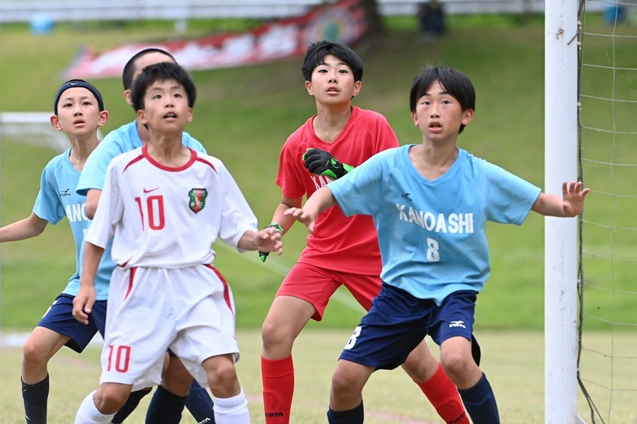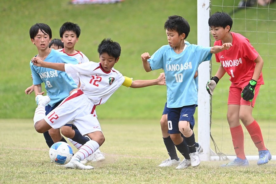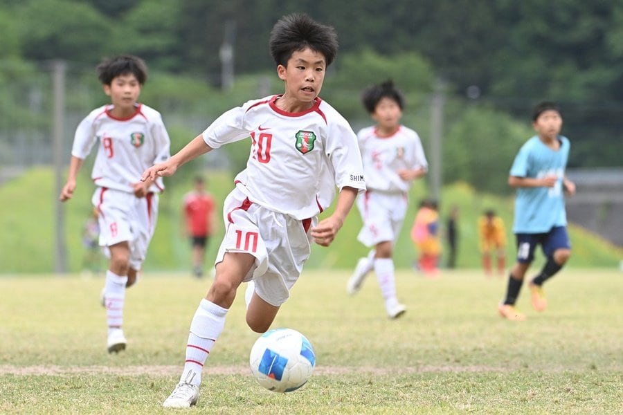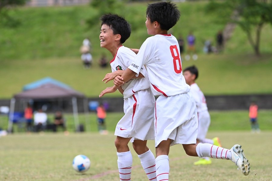 「第46回島根県ユースサッカーU-12交歓優勝大会」が8日、ひだまりパークみと(益田市美都町朝倉)で開幕し、県内4支部の予選を勝ち抜いた12チームがグループ戦で争った。