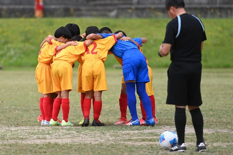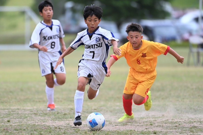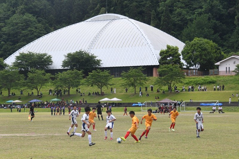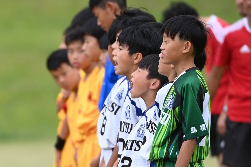 「第46回島根県ユースサッカーU-12交歓優勝大会」が8日、ひだまりパークみと(益田市美都町朝倉)で開幕し、県内4支部の予選を勝ち抜いた12チームがグループ戦で争った。