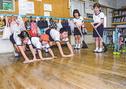 旧木田小学校の木造校舎を地域交流施設として使う木田暮らしの学校(浜田市旭町木田)で9日、雑巾がけのタイムを競う大会があった。参加者は足をもつれさせながらゴールに滑り込み、閉校した校舎に歓声が響いた。