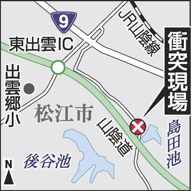 10日午後4時ごろ、松江市東出雲町揖屋の市道を車で走っていた人から「走行中にクマとぶつかった。どこに逃げたのかは分からない」と匿名で通報が松江署にあった。現場から西に約700メートル離れたところに市立出雲郷小学校があり、登校時間帯に教職員が通学路に立って見守り活動を行った。