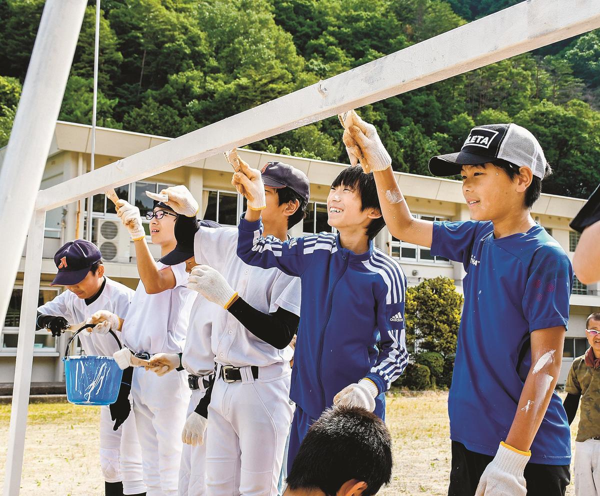 参加した瑞穂小学校6年の田中大雅さん(11)は「高い所のペンキ塗りが大変だった。学校をきれいにできてうれしい」と笑顔で話した。(吉野仁士)