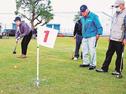 交流や健康維持などを目的に江津市グラウンド・ゴルフ協会(城山勝吉会長)が主催し、同市と山陰中央新報社、山陰中央新報江津販売店会が協賛した。