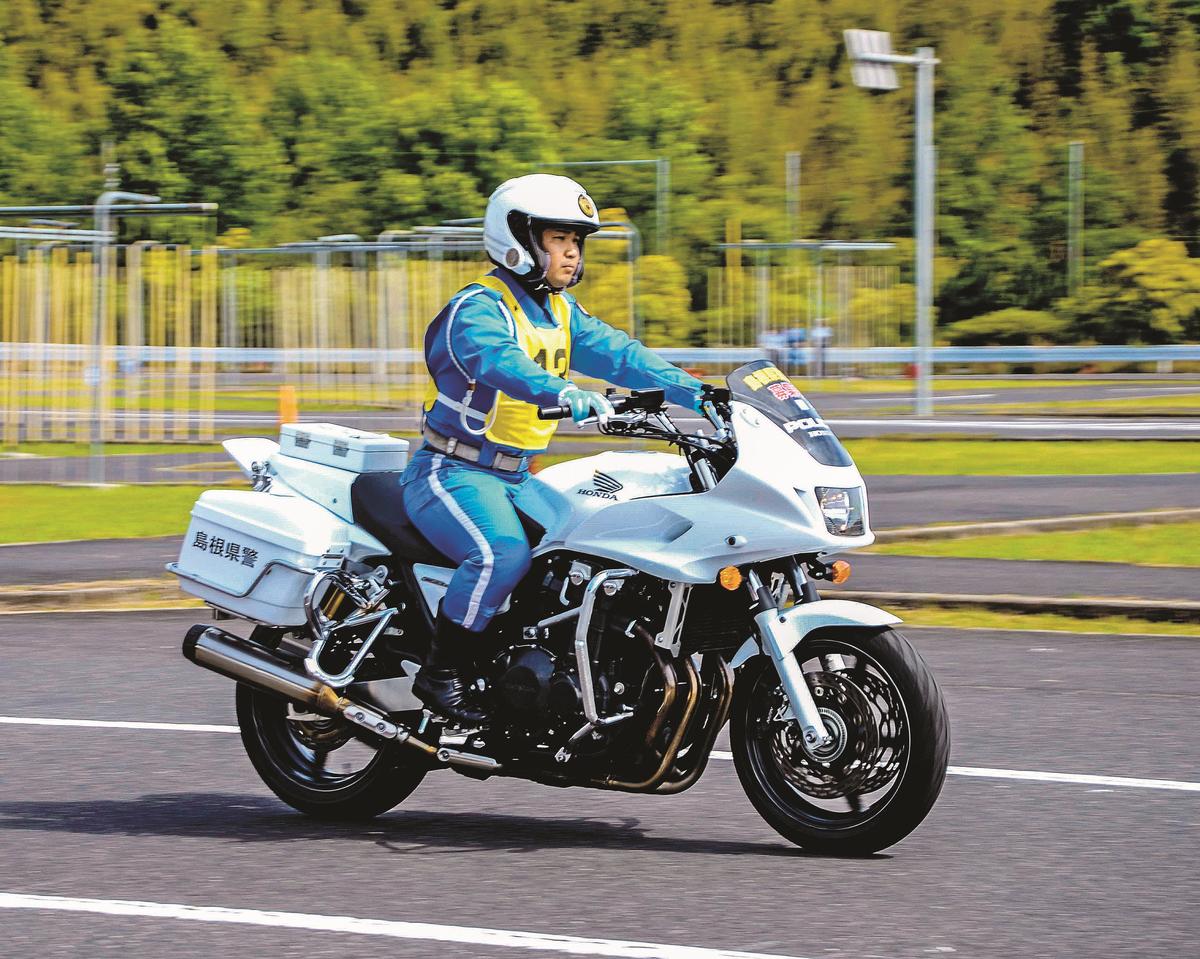 島根県警白バイ安全運転競技大会がこのほど、松江市打出町、運転免許センターであった。交通機動隊と県内7署の白バイ隊員16人が日頃の訓練で培った運転技術を披露し、安来署の田口大輔巡査部長(40)が総合優勝した。