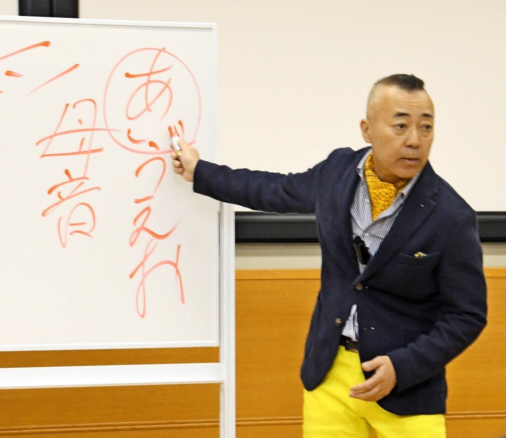 日本語は「あいうえお」の「あい」から始まる。すべての上に「愛」がある。日本語は母音という5人の母からできる。お母さん5人から子どもたちが生まれていて、最初に「あい(愛)」があるのが、日本語のすごさだ。日本は、最初に愛を教える国。あいは相手、譲り合い、助け合いの「あい」。愛という漢字には、真ん中に心があり、下に足が出ている。これは心を携えて、行動しなさいということ。今日から愛を感じ考え、行動してみることが大切だ。