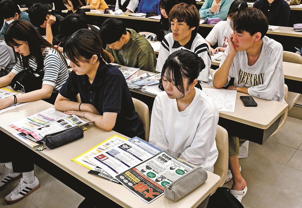 短期大学部保育学科の岩田望来(みくる)さん(18)は「大麻の危険性を改めて知れた。大麻ならいいか、ではなく、誘われたら断り、相手にもだめだと言えるようになりたい」と話した。(小引久実)