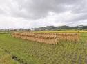 倉吉市関金町泰久寺の旧国鉄倉吉線廃線跡で、レールの間に生える名物の竹が新たに1本生えた。もともとあった3本のうち2本...