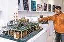 食品サンプル製造会社・いわさき(大阪市)から社内コンテストの作品などを借りた。食品サンプルの定番「持ち上げナポリタン」の超大盛り、超大盛りの海鮮丼ならぬ「海鮮どーんッ!」などが並ぶ。食品サンプルで作った鉄道ジオラマも目を引く。