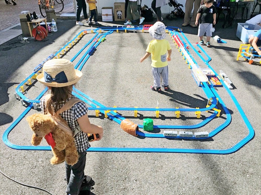 松江プラレールの会は2017年に設立。青木さんは自身で買い集めたり、知人から譲り受けたりしたプラレールを使い、同年10月にカラコロ広場(松江市末次本町)で初の交流会を開催した。