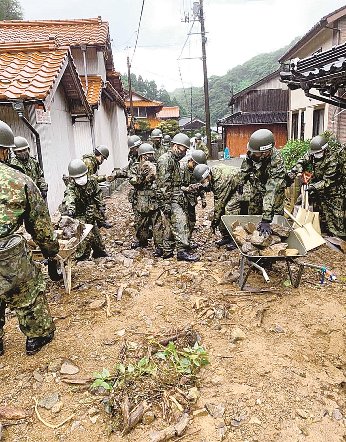 7日に孤立状態となっていた日本海沿岸の猪目集落(出雲市猪目町)は、島根県知事から要請を受けた陸上自衛隊出雲駐屯地の隊員が入り、道をふさぐ流木や土砂を取り除いた。猪目自治会の野津敏会長(52)は「50年以上住んでいるが、こんな雨は初めてだった」と驚いた。