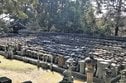 5月17日、江津市波積町にある市営弓場墓地公園内の無縁墓。市市民生活課の職員が、「無縁遺骨」が入った骨つぼを安置した。墓標の下には...