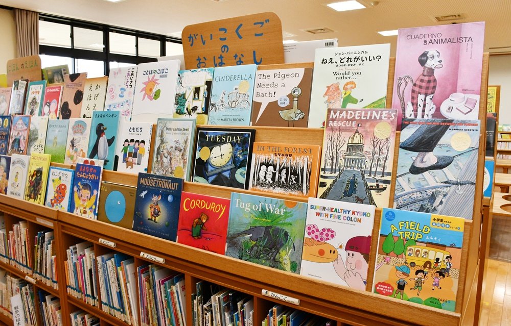 海外の絵本や、日本の作品を外国人向けに翻訳した絵本もそろう。離乳食や弁当のレシピ、裁縫の本などを集めた保護者向けコーナーもうれしい。