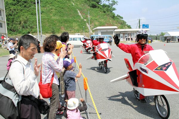 高尾山レッドクラブは、2004年の航空自衛隊創立50周年を機に、航空ショーの花形「ブルーインパルス」のように人々を楽しませるような技を自転車でも演出できないものかと部隊広報を目的に結成されました。