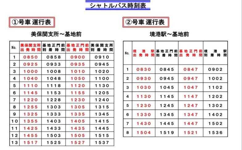 当日は松江市美保関支所、JR境港駅からそれぞれ、シャトルバスが運行される。